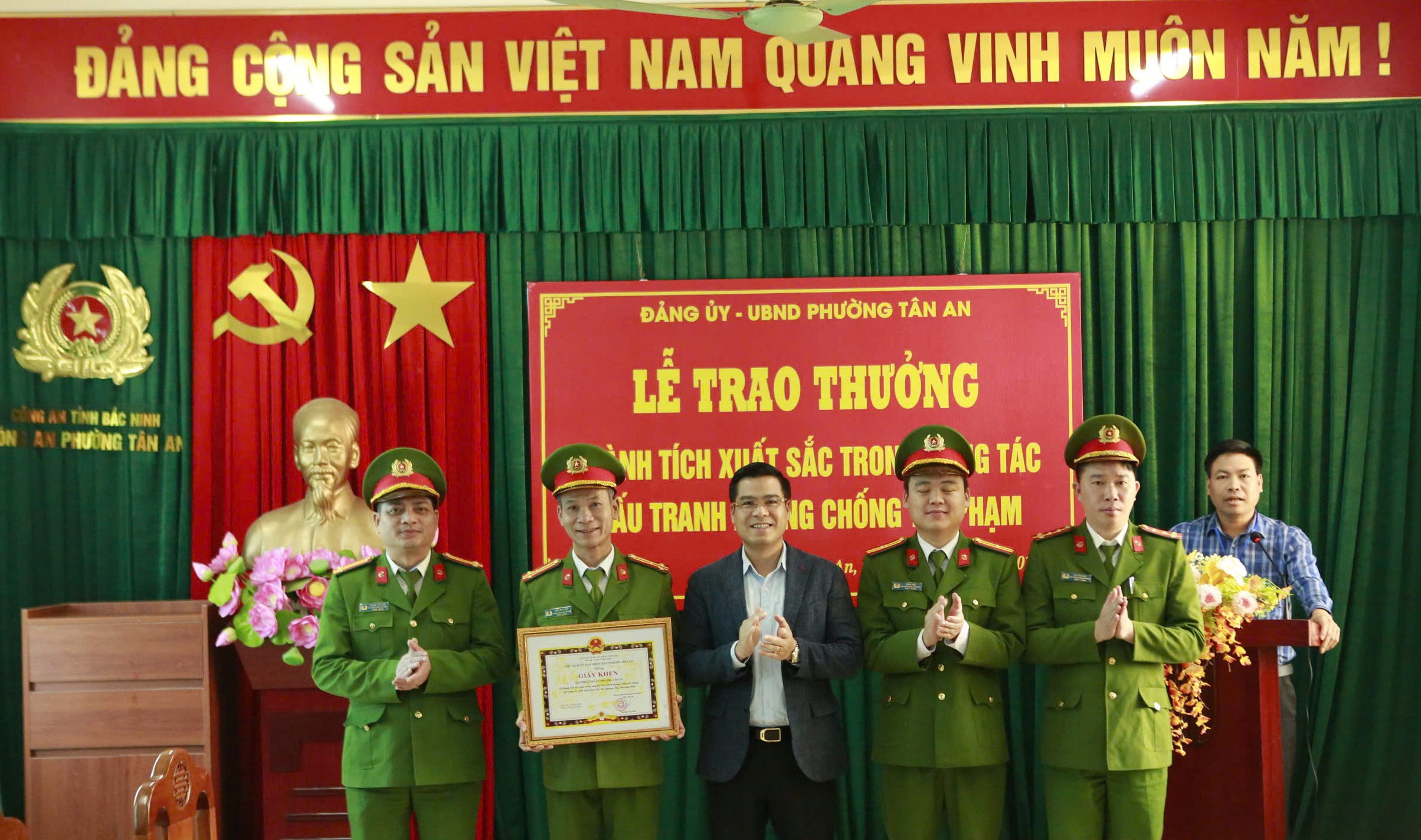 Đảng ủy - UBND phường Tân An đã tổ chức gặp mặt, biểu dương và trao thưởng đột xuất cho tập thể cán bộ, chiến sĩ Công an phường Tân An.