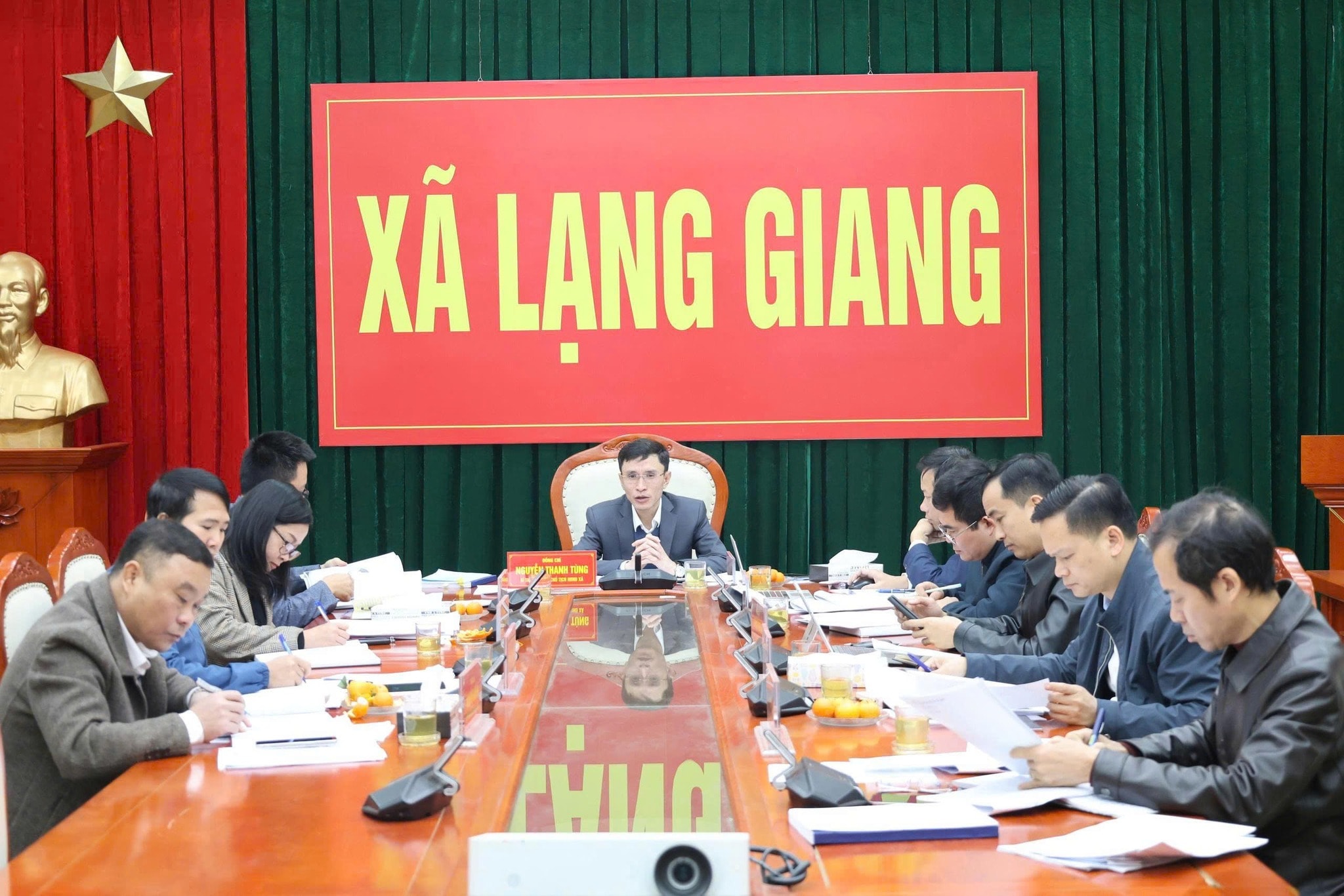 Đồng chí Nguyễn Thanh Tùng, Bí thư Đảng ủy, Chủ tịch HĐND, Trưởng Ban Chỉ đạo bầu cử xã Lạng Giang, tỉnh Bắc Ninh chủ trì hội nghị.
