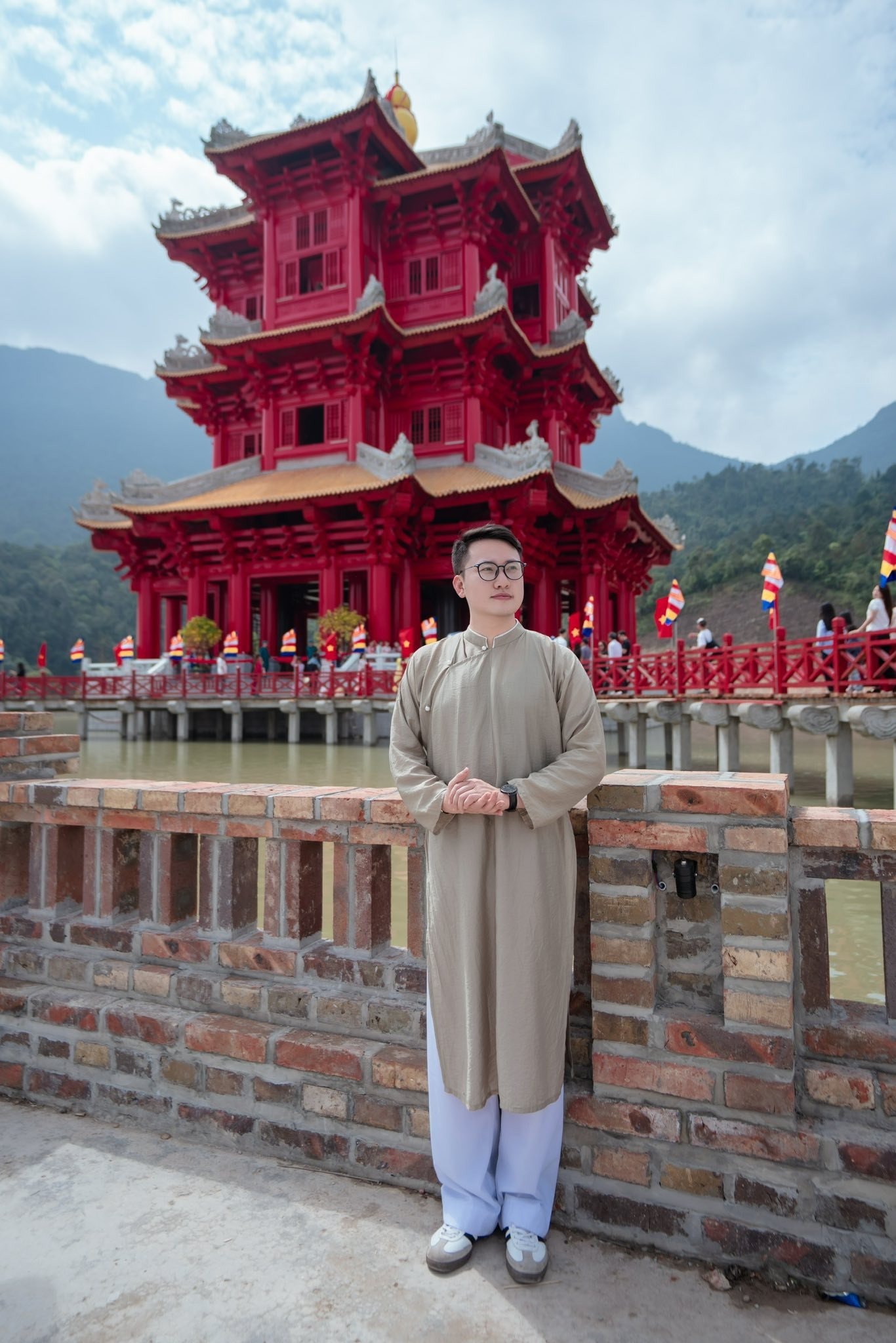 Sự kết hợp giữa sắc đỏ của gỗ và mặt nước bao quanh tạo nên hiệu ứng thị giác ấn tượng. Đặc biệt khi màn đêm buông xuống, hệ thống ánh sáng khiến tòa tháp trở nên lung linh và rực rỡ hơn bao giờ hết, thu hút rất đông bạn trẻ đến chụp ảnh và chiêm bái.