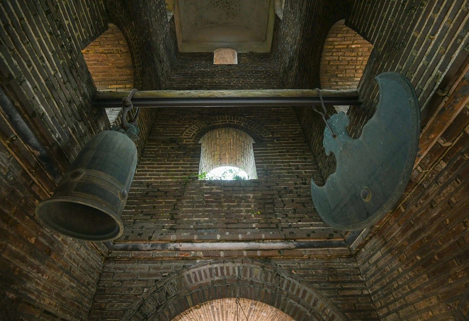 Bên trong tháp Hòa Phong – dấu tích kiến trúc thời Trần còn lại tại chùa Dâu. (Ảnh: Sưu tầm)