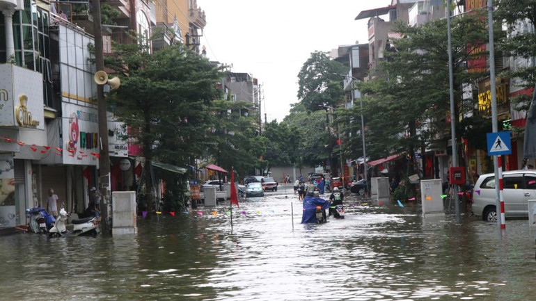 Nhiều tuyến phố tại phường Bắc Giang ngập sâu chiều 7/10.