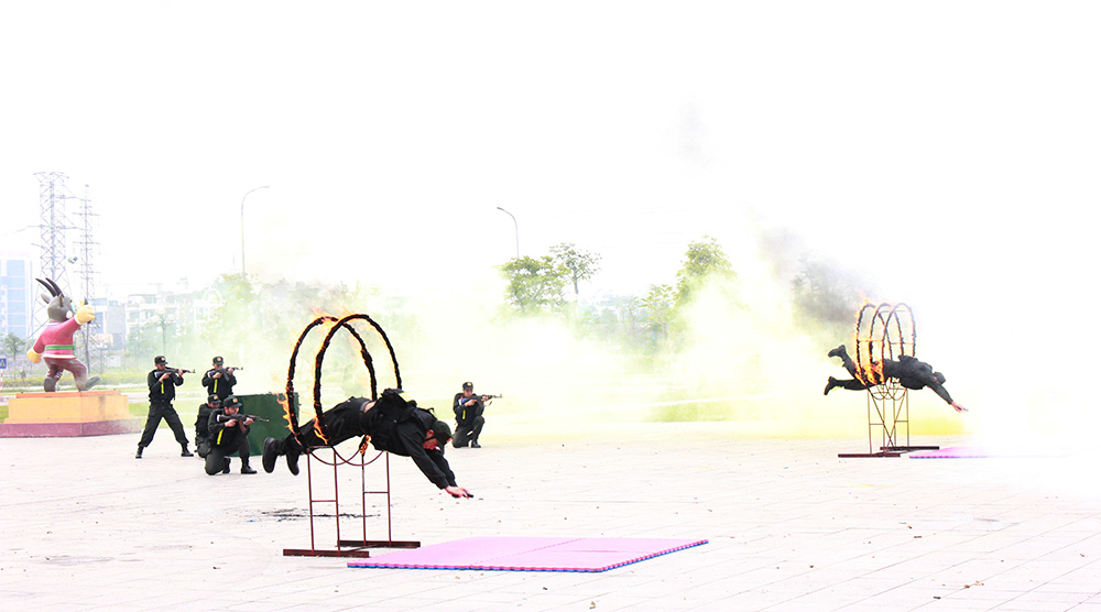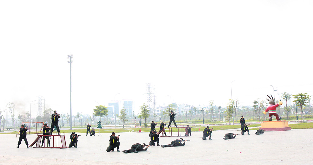 Phần thực binh phương án tác chiến, cán bộ, chiến sĩ đơn vị đã tham gia diễn tập một số tình huống mô phỏng gồm: Giải tán đám đông gây rối, giải cứu con tin, xử lý đối tượng quá khích tại mục tiêu trọng điểm…