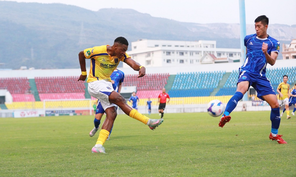 Ngoại binh Bruno Cunha thi đấu nổi bật với nhiều cơ hội nhưng không ghi được bàn thắng cho Bắc Ninh FC.