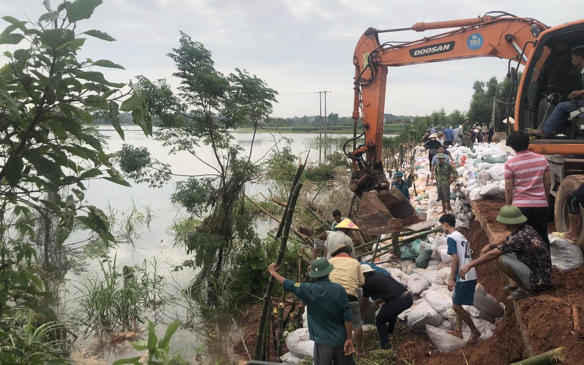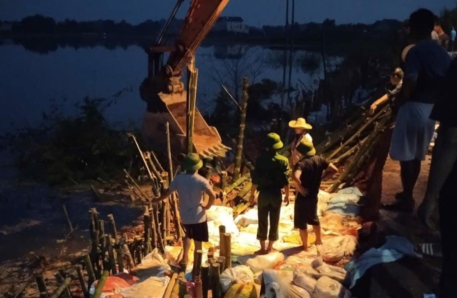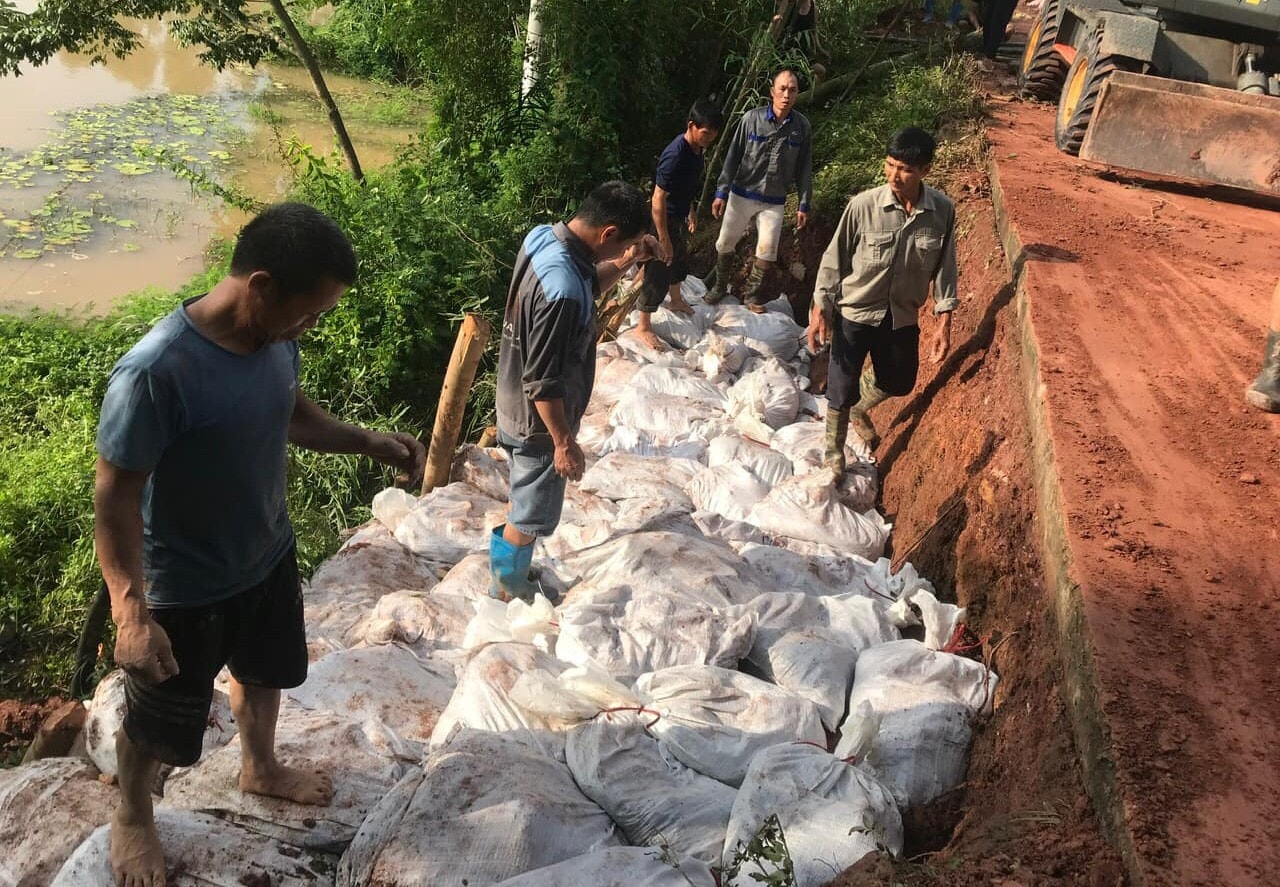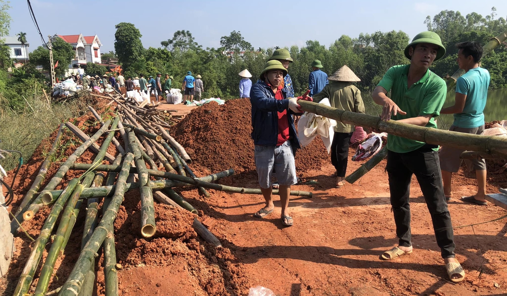 Những đoạn đê bị sạt lở nhanh chóng được gia cố. Ảnh: Nhóm Người Mỹ Thái.