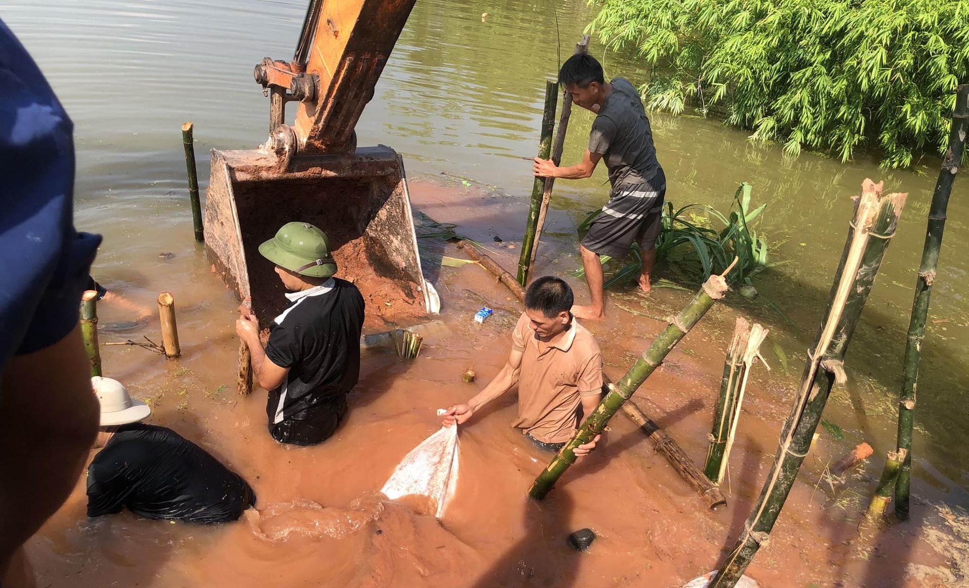 Toàn dân chung sức, đồng lòng chống lũ. Ảnh: Nhóm Người Mỹ Thái.