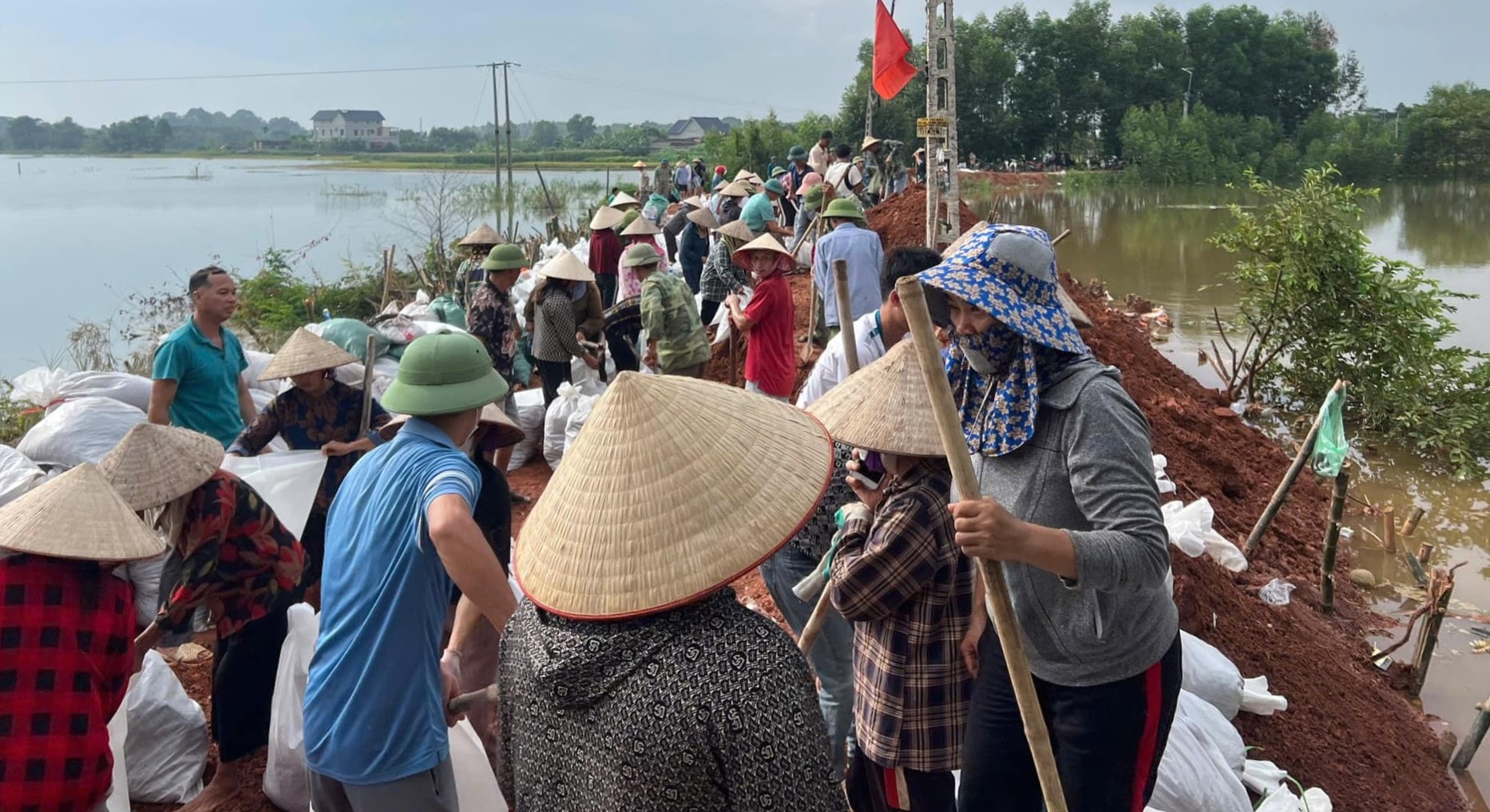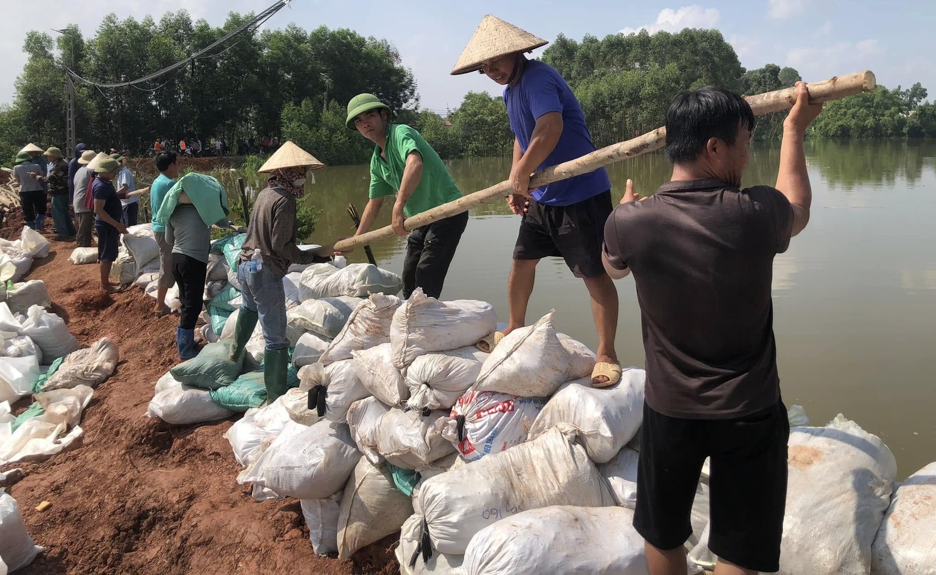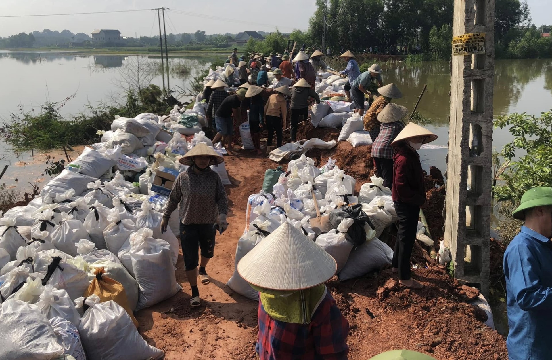 Đến tối cùng ngày, mạch nước ngầm đã làm đê bị sạt lở khoảng 20m trong lúc nước sông Thương dâng đỉnh lũ lịch sử sau mưa lớn hoàn lưu bão số 11, uy hiếp tính mạng và tài sản của hơn 100 hộ dân thôn Đức Thọ sinh sống phía trong vùng đê bao. Cuộc chiến với lũ lụt của chính quyền và người dân xã Mỹ Thái chính thức bước vào cao điểm.
