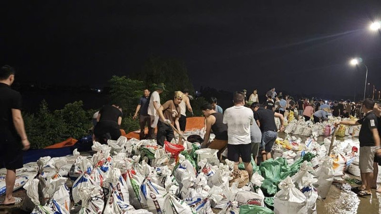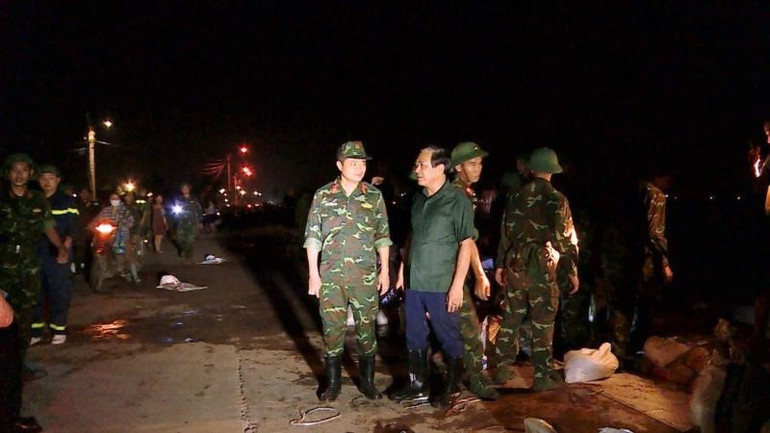 Do trong ngày 7/10, các lực lượng phải thực hiện công tác phòng, chống lụt bão tại các địa bàn trọng điểm, cho nên vào ban ngày chỉ có khoảng gần 200 người tham gia đắp đê. Vì vậy công việc gia cố đoạn đê này được tổ chức quyết liệt, huy động nhân lực lớn vào ban đêm.