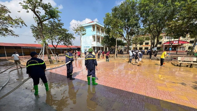 Nước rút, các lực lượng và người dân nhanh chóng dọn dẹp trường lớp để học sinh sớm trở lại trường.