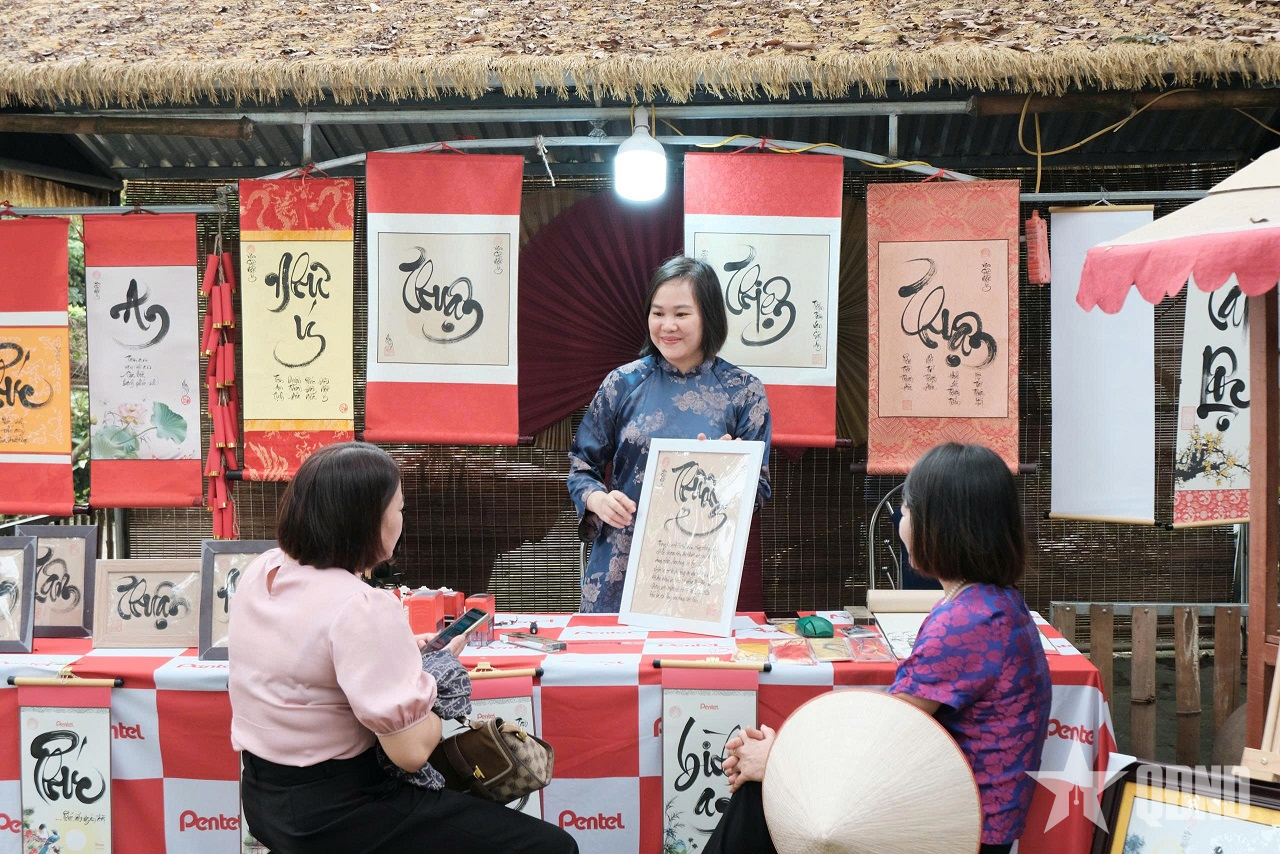 Trình diễn thư pháp tại ngày khai hội chùa Bổ Đà.