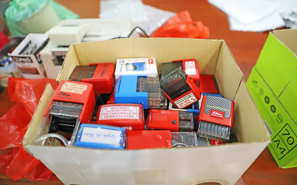Sau khi tống đạt các Quyết định khởi tố, Phòng Cảnh sát kinh tế tiến hành khám xét Công ty Hiền Khiêm (địa chỉ: Số 74 đường Lê Hồng Phong, phường Kinh Bắc, tỉnh Bắc Ninh) thu giữ nhiều con dấu, dấu chức danh liên quan đến hoạt động của Công ty Hiền Khiêm và nhiều tài liệu liên quan.