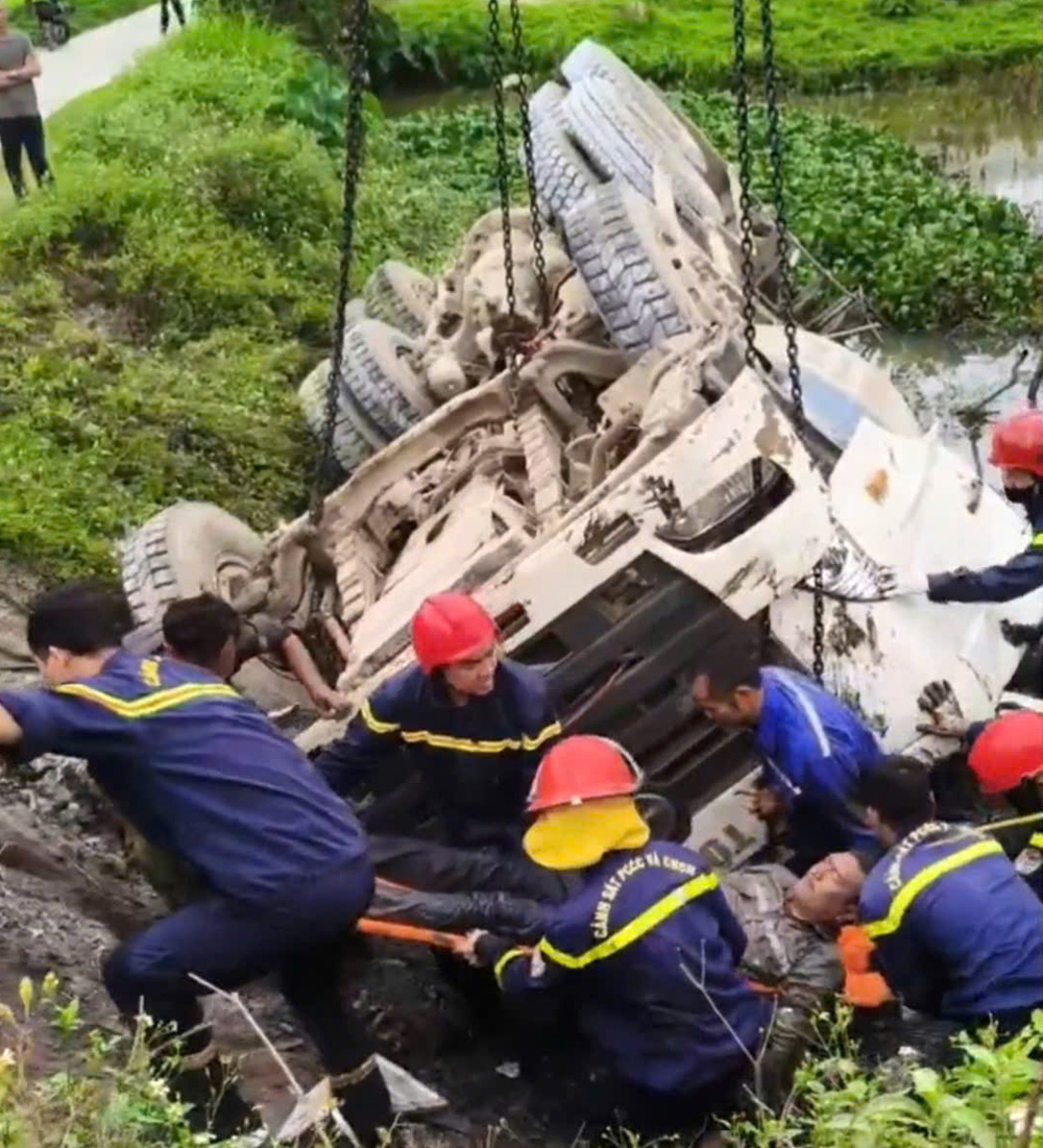 Tại hiện trường, chiếc xe trộn bê tông bị lật dưới nước, có chiều hướng tụt sâu, mực nước trong xe dâng lên khiến nạn nhân rơi vào trạng thái hoảng loạn, khó thở. Trong thời gian chờ phương tiện cẩu đến, lực lượng Cảnh sát phòng cháy, chữa cháy và cứu nạn, cứu hộ đã nhanh chóng tiếp cận, giữ phần đầu nạn nhân nổi trên mặt nước, đồng thời trấn an tinh thần để triển khai các biện pháp cứu nạn.