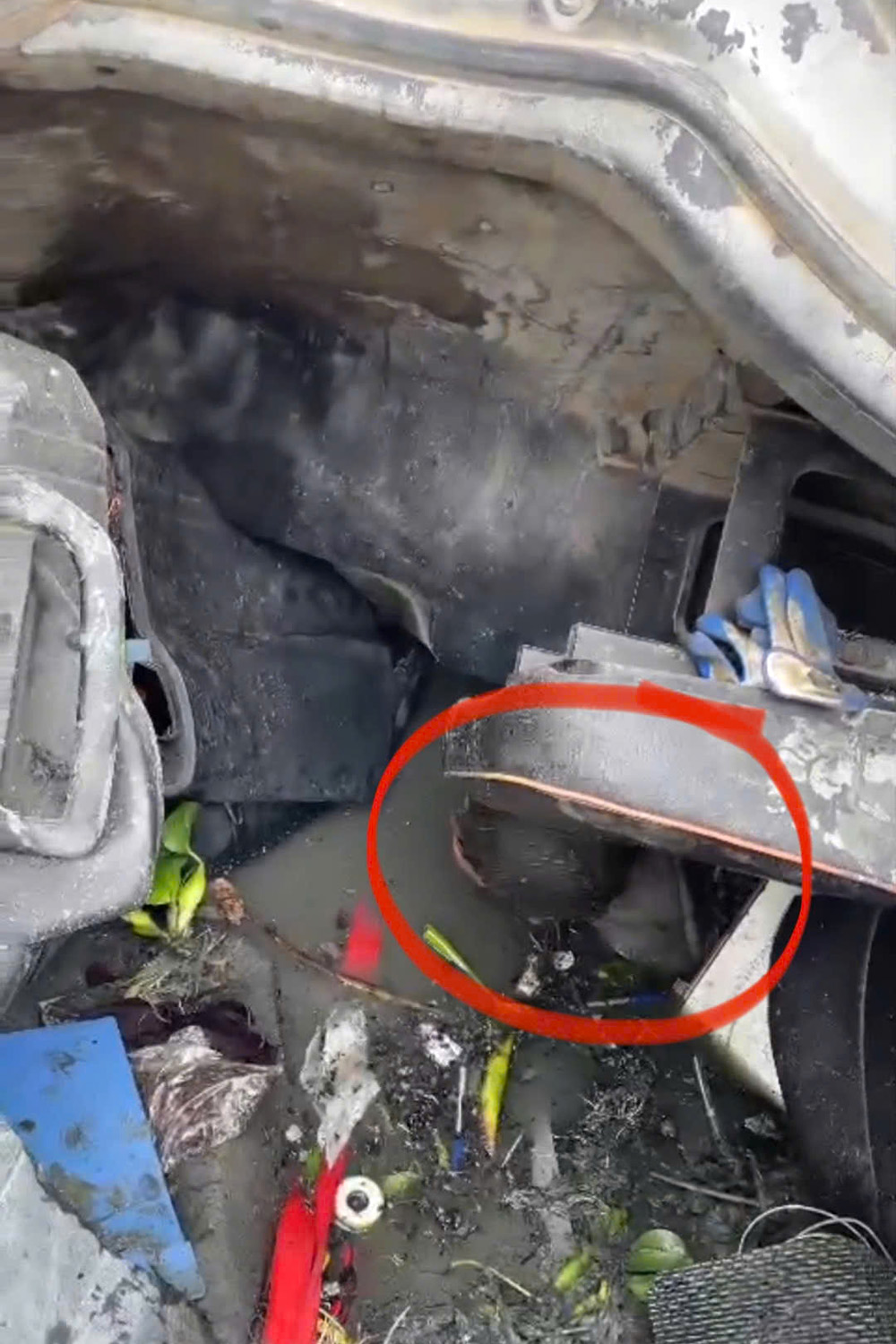 Nạn nhân (khoanh đỏ) bị mắc kẹt trong xe.