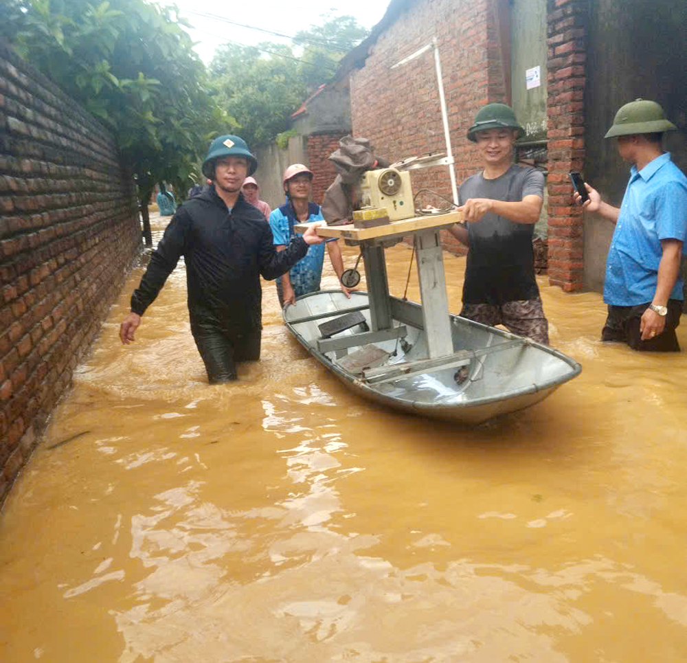 Xã Mỹ Thái huy động lực lượng tại chỗ hỗ trợ người dân di dời tài sản ra khỏi khu vực ngập lụt.