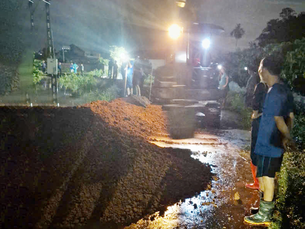 Xã Phúc Hòa huy động phương tiện, nhân lực xuyên đêm khắc phục đoạn đê từ Km0 - Km1 thuộc thôn Cửa Sông bị tràn.
