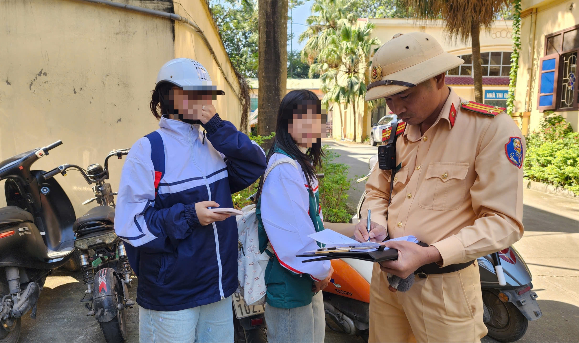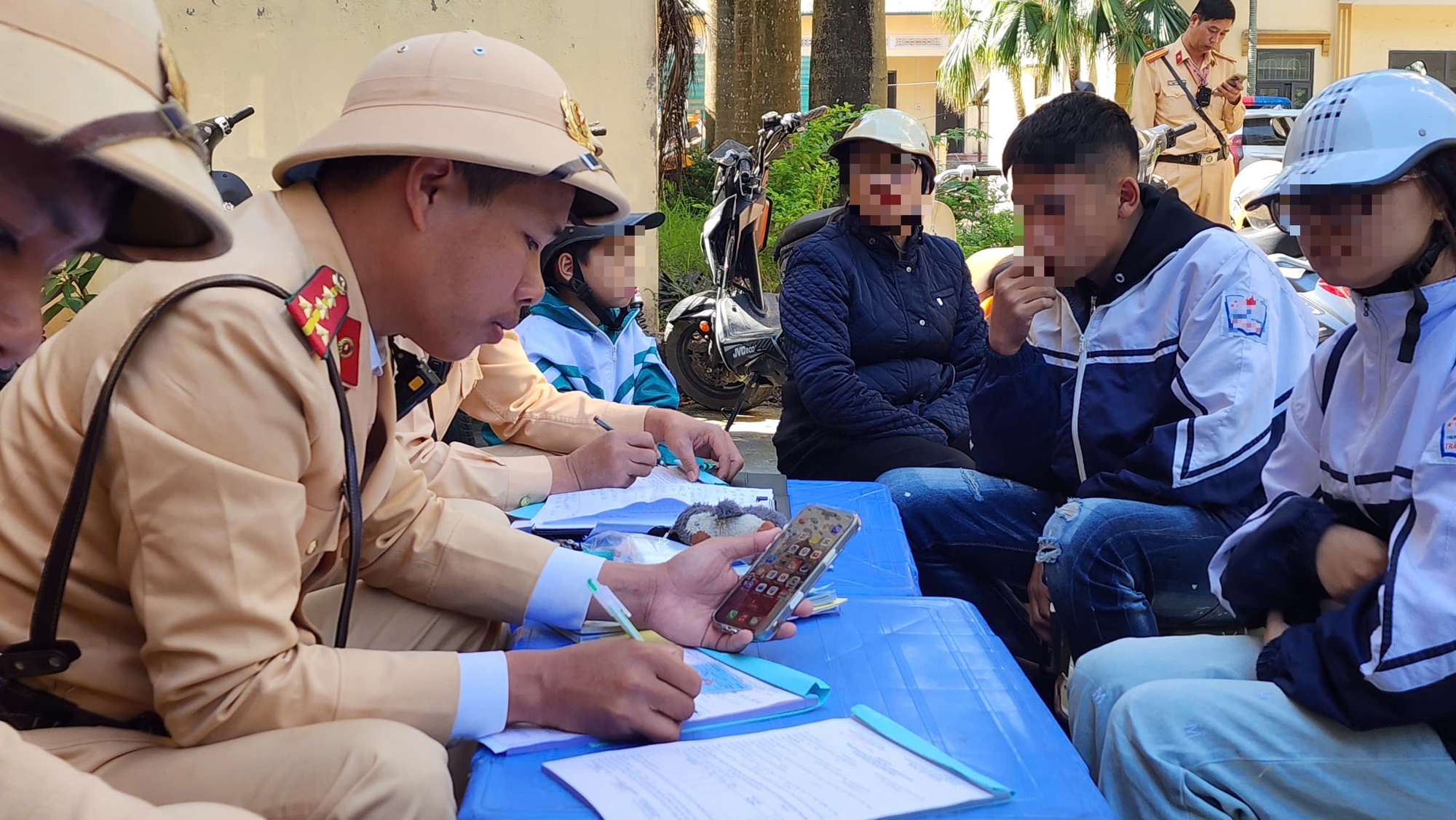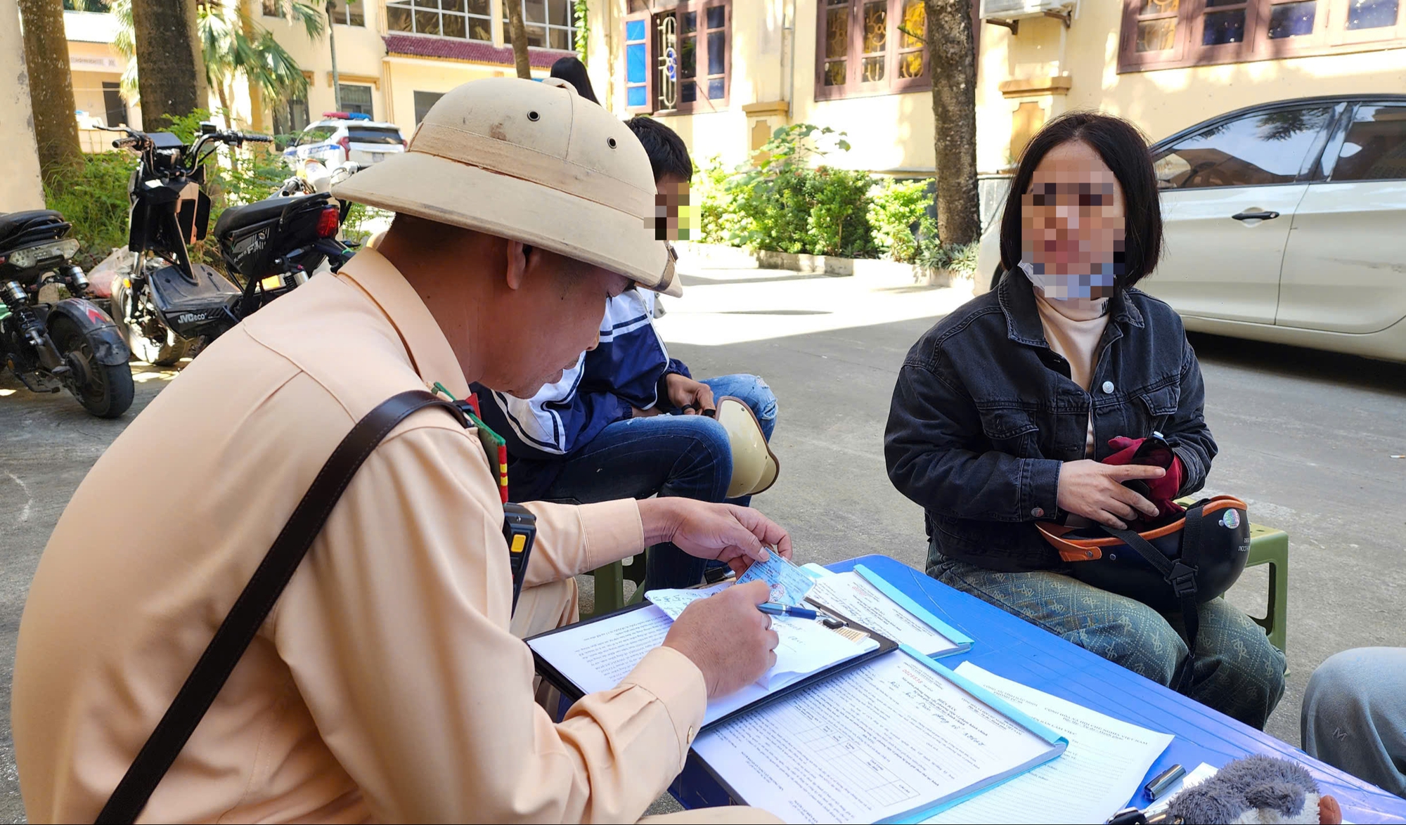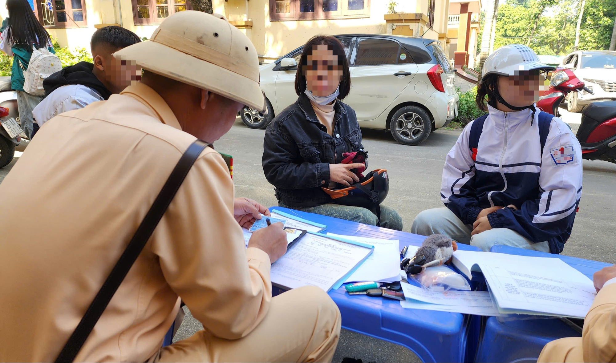 Khi phát hiện hành vi vi phạm của T, lực lượng Cảnh sát giao thông cũng mời chị V.T.H (mẹ của T) đến ký cam kết và tuyên truyền.