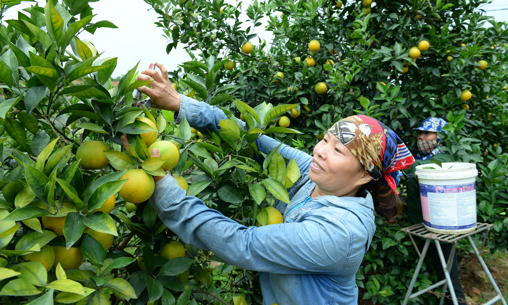 Người dân thôn Đồng Quýt, xã Nam Dương thu hoạch cam.