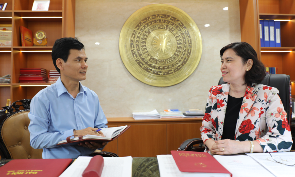 Đồng chí Trần Thị Hằng, Ủy viên Ban Thường vụ Tỉnh ủy, Phó Chủ tịch Thường trực HĐND tỉnh trao đổi với đại diện lãnh đạo Báo và Phát thanh, Truyền hình Bắc Ninh về quá trình xây dựng các nghị quyết.