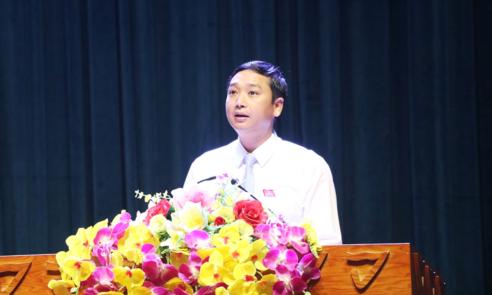 Đồng chí Nguyễn Việt Oanh, Phó Bí thư Tỉnh ủy, Chủ tịch HĐND tỉnh phát biểu tại kỳ họp thứ hai, khóa XIX, HĐND tỉnh, nhiệm kỳ 2021-2026.