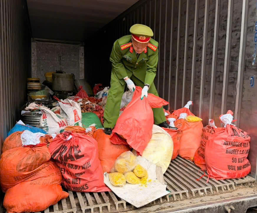 Tại thời điểm kiểm tra, tổ công tác phát hiện vợ chồng ông Nguyễn Văn Vinh đang chế biến riềng xay tươi có trộn chất tẩy đường và chất Vàng O, là những chất hóa học bị nghiêm cấm sử dụng trong chế biến thực phẩm. Tại hiện trường, lực lượng chức năng thu giữ gần 2 tấn riềng xay thành phẩm có màu vàng đậm và vàng nhạt đều được trộn chất Vàng O và chất tẩy đường.