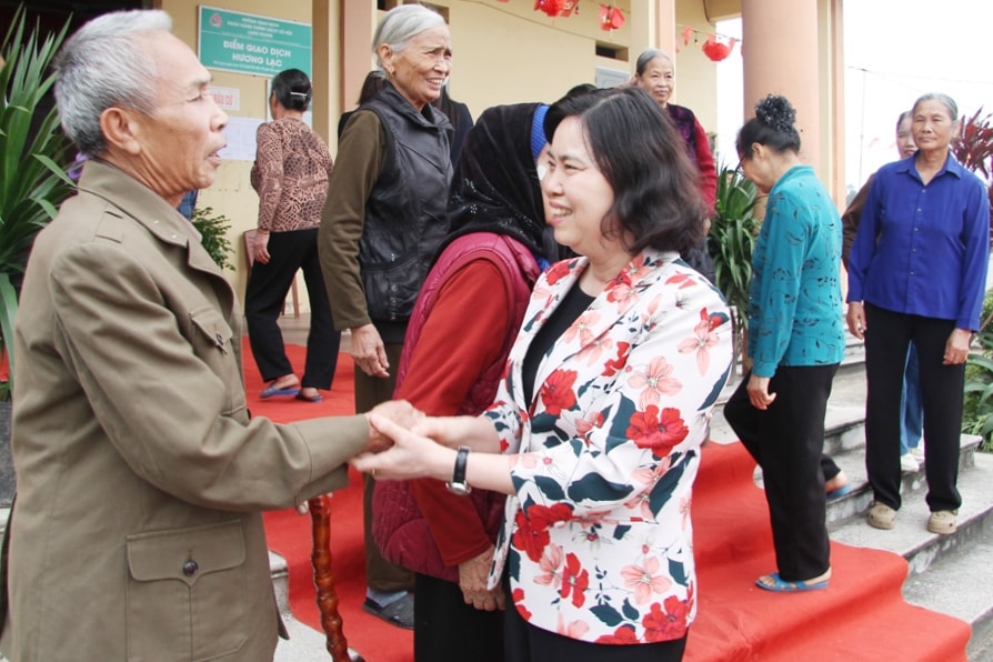 Phó Chủ tịch Thường trực HĐND tỉnh Trần Thị Hằng trò chuyện, thăm hỏi các cử tri.