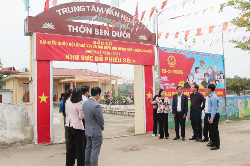 + Trước đó, chiều 6/3, Phó Chủ tịch Thường trực HĐND tỉnh Trần Thị Hằng cũng đã kiểm tra công tác chuẩn bị bầu cử tại xã Tiên Lục. Phó Chủ tịch Thường trực HĐND tỉnh đánh giá cao sự chủ động của địa phương và bày tỏ tin tưởng với sự chuẩn bị nghiêm túc, trách nhiệm của cấp ủy, chính quyền và các tổ bầu cử, xã Tiên Lục sẽ tổ chức thành công cuộc bầu cử đại biểu Quốc hội khóa XVI và đại biểu HĐND các cấp nhiệm kỳ 2026 - 2031, bảo đảm dân chủ, đúng pháp luật, an toàn, tiết kiệm.