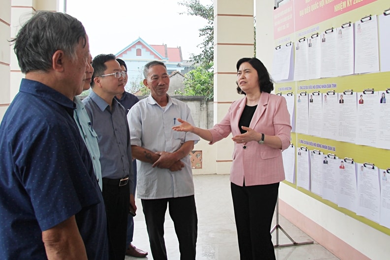 Phát biểu tại buổi kiểm tra, Phó Chủ tịch Thường trực HĐND tỉnh Trần Thị Hằng ghi nhận, biểu dương sự chủ động của Ủy ban bầu cử xã, các tổ bầu cử và đội ngũ cán bộ cơ sở trong triển khai nhiệm vụ phục vụ cuộc bầu cử.