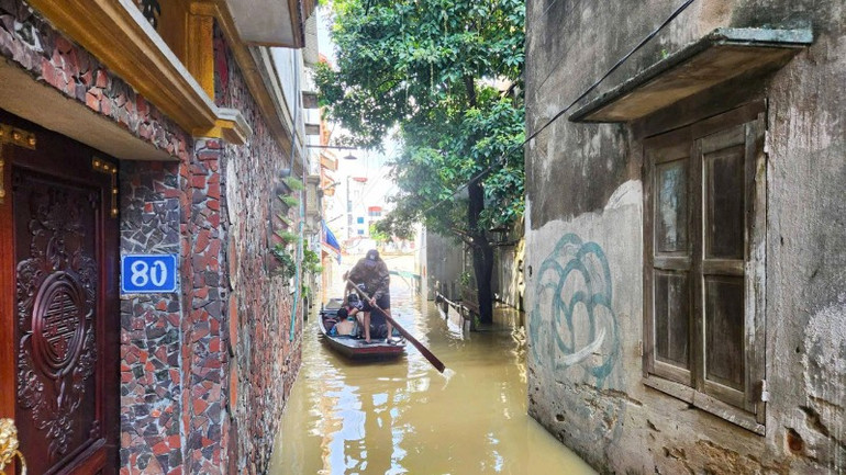Mưa lũ và hoàn lưu sau bão số 10 làm nhiều công trình, làng mạc tại Bắc Ninh bị ngập sâu.
