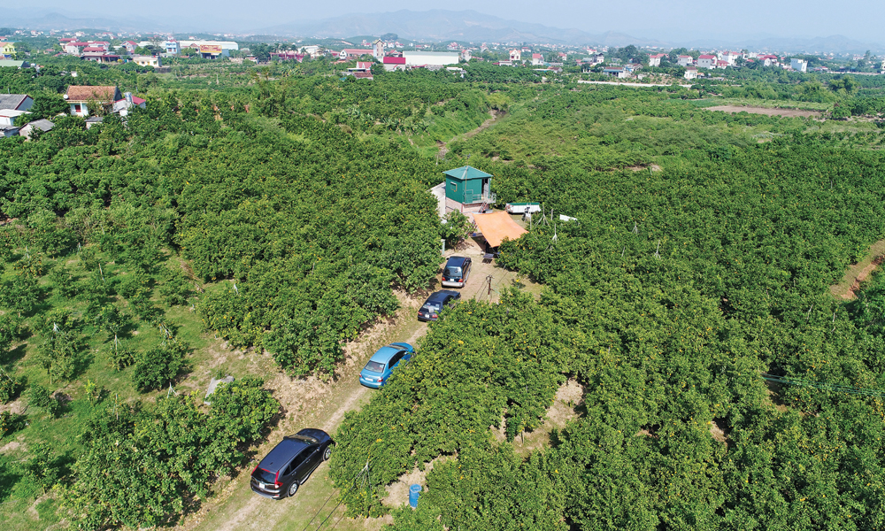 Trang trại trồng cam tại thôn Cầu Đất, phường Phượng Sơn - điểm đến được nhiều du khách lựa chọn.