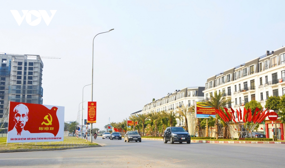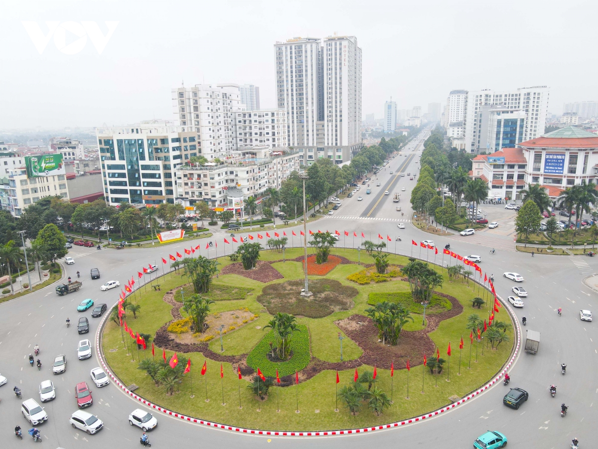 Nhiều tuyến đường tại tỉnh Bắc Ninh được trang hoàng pano, khẩu hiệu.
