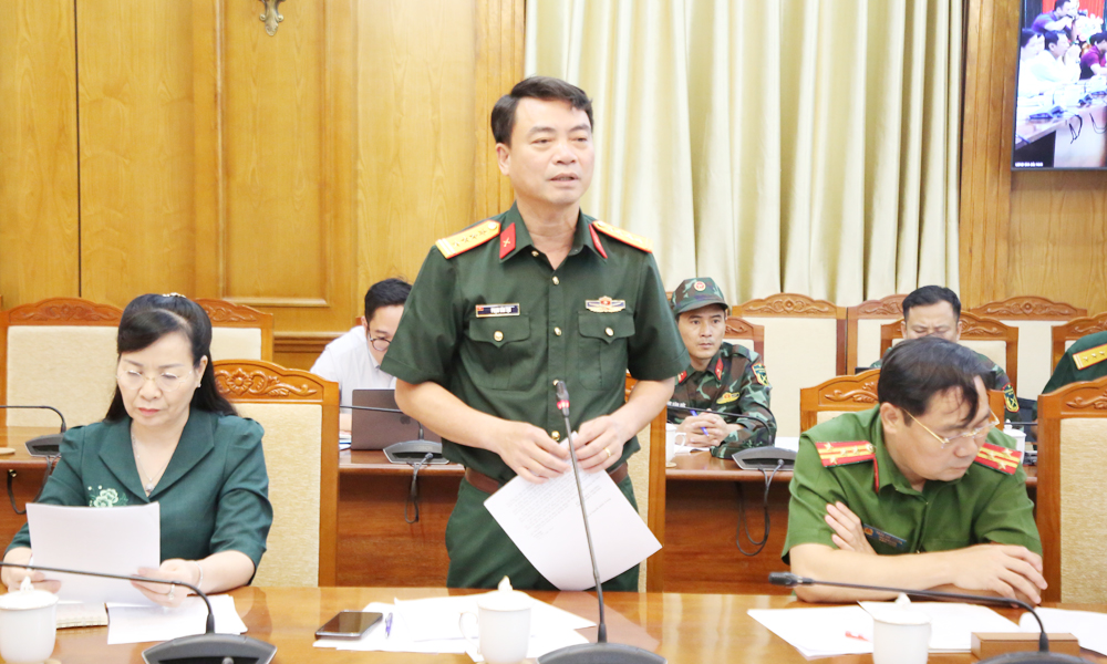 Đại diện lãnh đạo Bộ Chỉ huy quân sự tỉnh báo cáo tình hình khắc phục hậu quả mưa bão.