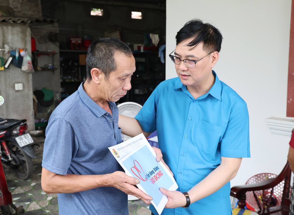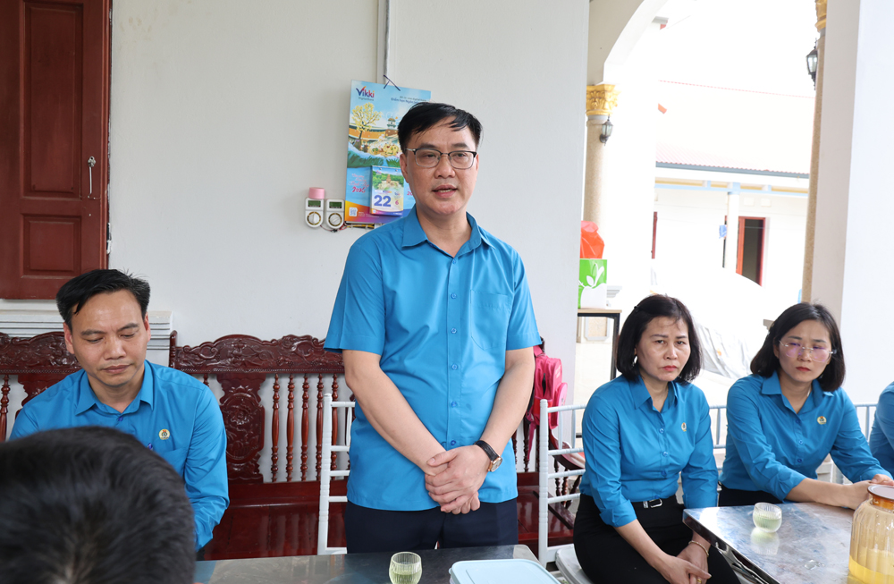 Đoàn thăm hỏi có đồng chí Nguyễn Mạnh Hùng, Phó Chủ tịch Liên đoàn Lao động tỉnh; lãnh đạo cấp ủy, chính quyền xã Lạng Giang, đại diện doanh nghiệp nơi đoàn viên làm việc.