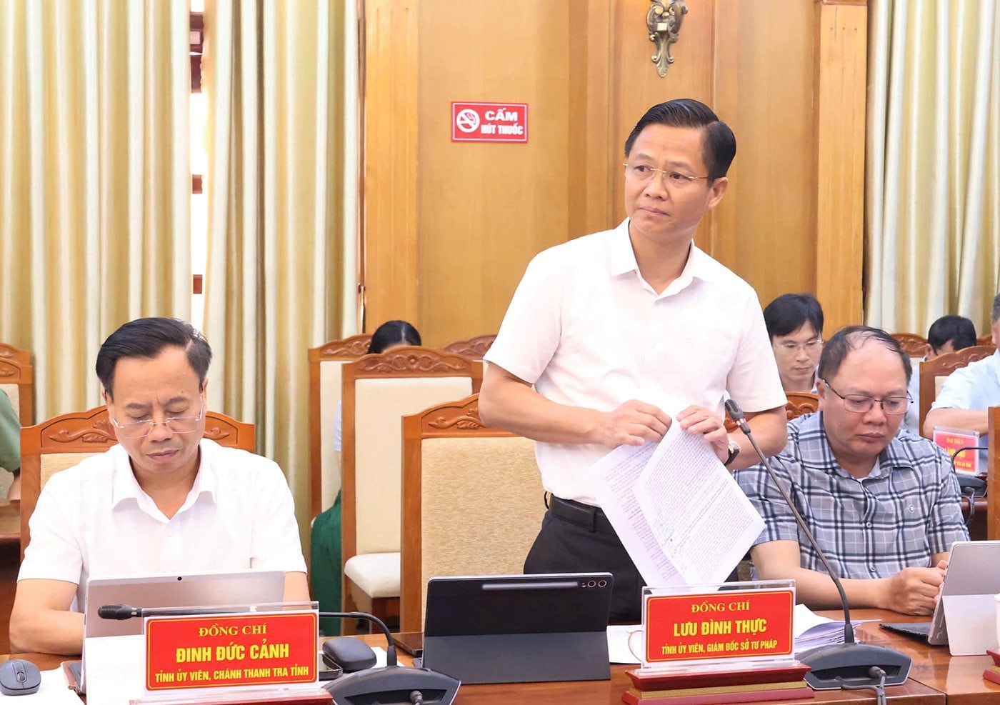 Giám đốc Sở Tư pháp Lưu Đình Thực trao đổi một số nội dung.