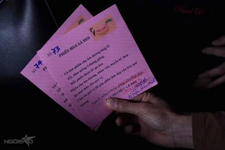 Để đảm bảo trật tự, người mua phải nhận phiếu được phát trước và xếp hàng chờ đến lượt. Nhiều người như cô Nhẫn (xã Đào Xá) đã phải có mặt từ rất sớm với mong muốn mua được con gà đen ưng ý để dâng cúng tổ tiên và cầu phúc cho gia đình.
