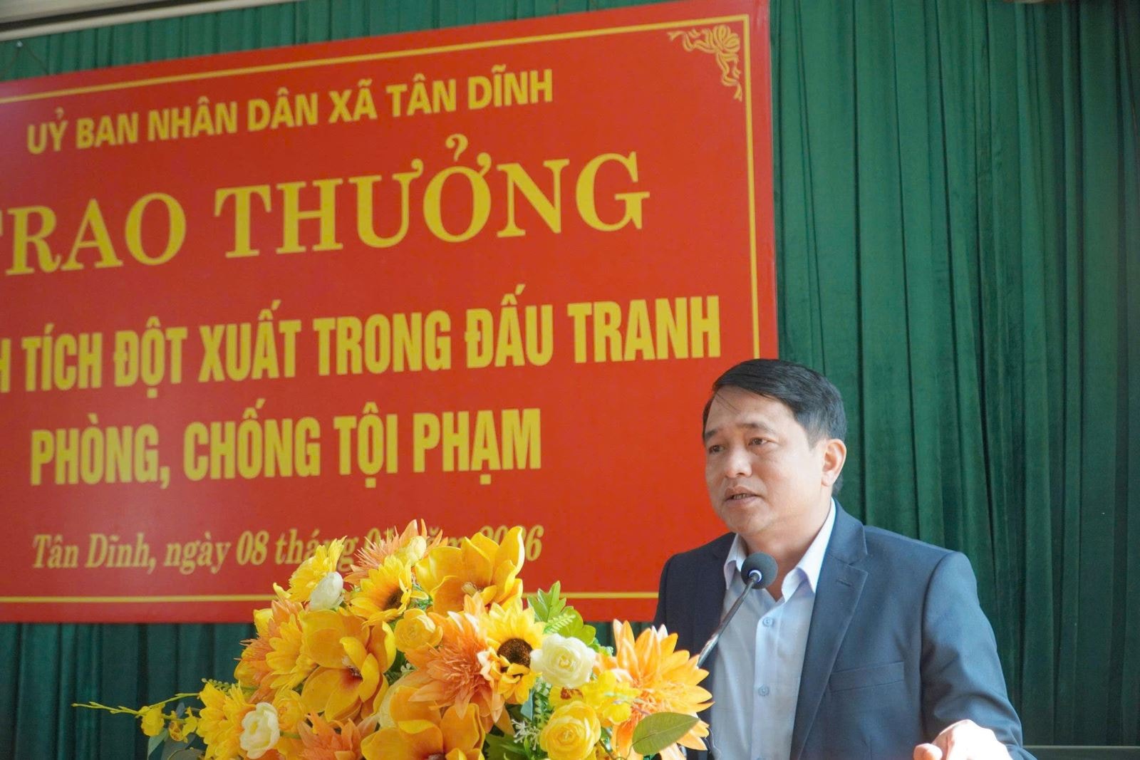 Phát biểu tại buổi khen thưởng, đồng chí Nguyễn Văn Minh – Chủ tịch UBND xã ghi nhận, biểu dương tinh thần trách nhiệm, sự chủ động, mưu trí, dũng cảm của tập thể Công an xã Tân Dĩnh; đồng thời khẳng định những kết quả đạt được là minh chứng rõ nét cho sự nỗ lực, đoàn kết, quyết tâm cao của lực lượng Công an xã trong thực hiện nhiệm vụ được giao. Đồng chí mong muốn trong thời gian tới, Công an xã tiếp tục phát huy những thành tích đã đạt được, chủ động nắm chắc tình hình, làm tốt công tác tham mưu, kiên quyết đấu tranh phòng, chống tội phạm, giữ vững ANTT, vì cuộc sống bình yên và hạnh phúc của Nhân dân.