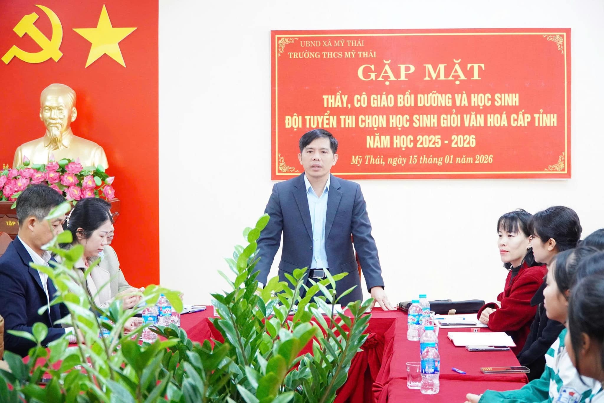 Phát biểu tại buổi gặp mặt, đồng chí Nguyễn Văn Chức, Phó Chủ tịch Thường trực UBND xã Mỹ Thái đã biểu dương và ghi nhận những nỗ lực, tâm huyết của đội ngũ thầy, cô giáo trực tiếp tham gia công tác bồi dưỡng học sinh giỏi; đồng thời đánh giá cao tinh thần vượt khó, ham học hỏi và ý chí quyết tâm của các em học sinh đội tuyển. Đồng chí nhấn mạnh, chính quyền địa phương luôn quan tâm, tạo điều kiện thuận lợi cho sự nghiệp giáo dục, coi đây là nhiệm vụ quan trọng, lâu dài trong phát triển nguồn nhân lực của địa phương.