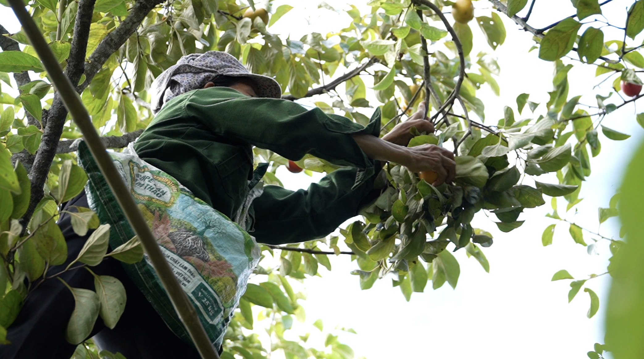 Người dân thôn Thiên Lý thu hoạch hồng trong vườn hơn 40 năm tuổi, mang lại nguồn thu ổn định mỗi năm.
