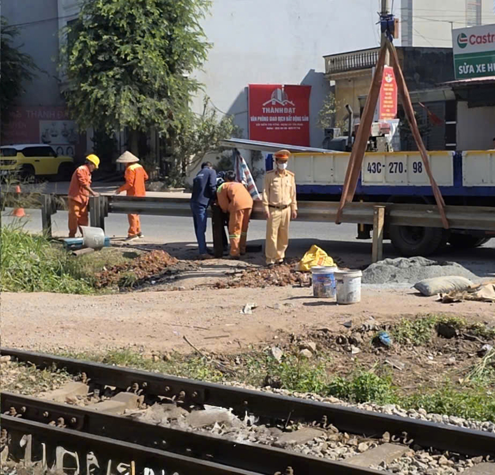 Lực lượng chức năng lắp hộ lan, xóa dứt điểm lối đi qua đường sắt.