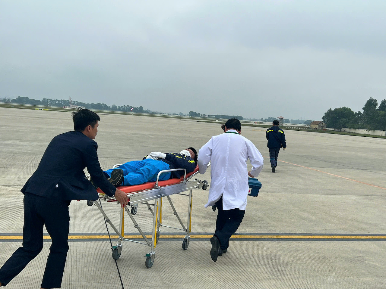 Nhận thông tin, Đội Y tế lập tức triển khai phương án. Khi máy bay vừa chạm đường băng, kíp trực gồm bác sĩ, y sĩ và lái xe cứu thương đã có mặt tại vị trí 42. Bệnh nhân có tiền sử tiểu đường, tăng huyết áp, xuất hiện yếu tay chân, tiểu tiện không tự chủ - dấu hiệu thiếu máu não, nguy cơ đột quỵ rất cao.