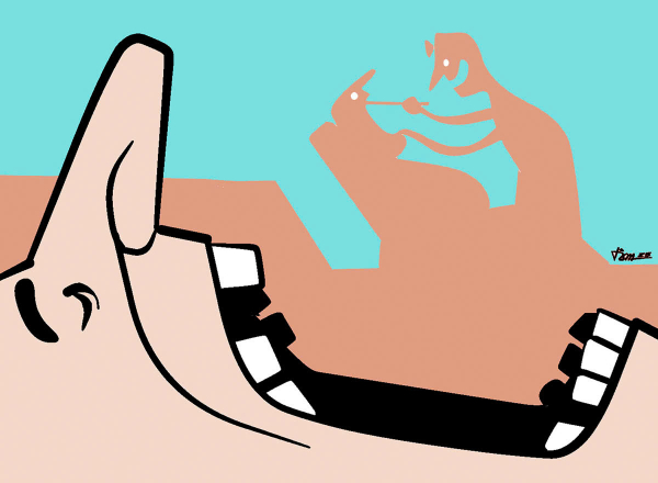 - Ông không cần phải há mồm mãi thế đâu! - bệnh nhân cao lớn khinh khỉnh nói và bước nhanh ra khỏi phòng răng hàm mặt.
