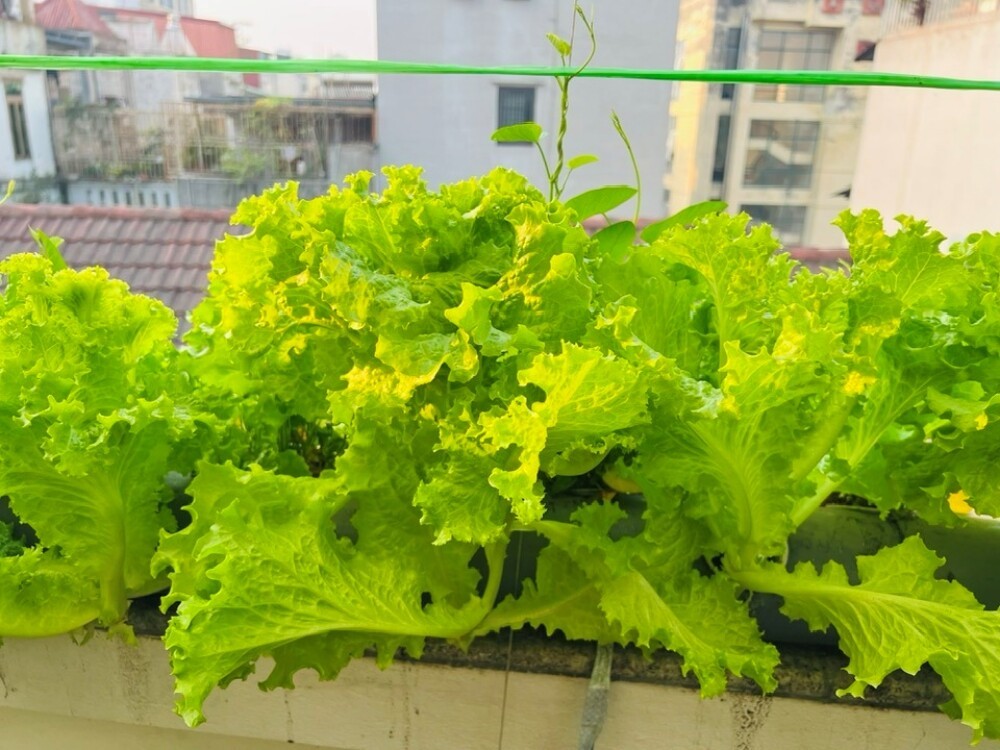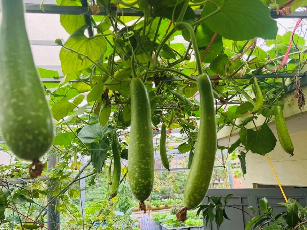 Với cô, mỗi gốc cây, mỗi luống rau đều là biểu hiện của sự trân trọng cuộc sống. “Tôi biết ơn ngôi nhà, biết ơn bố mẹ, biết ơn đất trời, nên muốn tận dụng từng góc nhỏ, không để phí đi chút nào, kể cả trần nhà”, cô tâm sự.