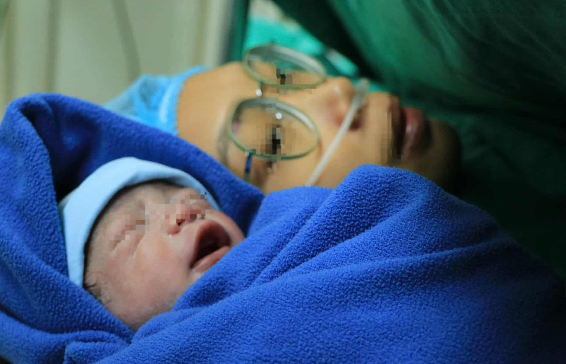Bé trai chào đời an toàn, cân nặng 2,3kg sau thời gian dài người mẹ chiến đấu cùng căn bệnh ung thư vòm họng. Ảnh: BVCC