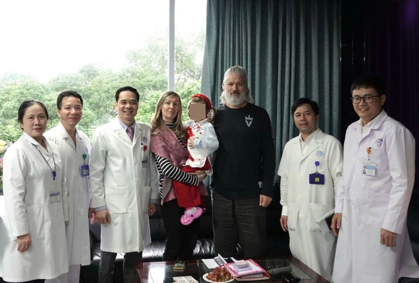 Gia đình bệnh nhi người Australia cùng đội ngũ y bác sĩ Bệnh viện Đa khoa Xanh Pôn.