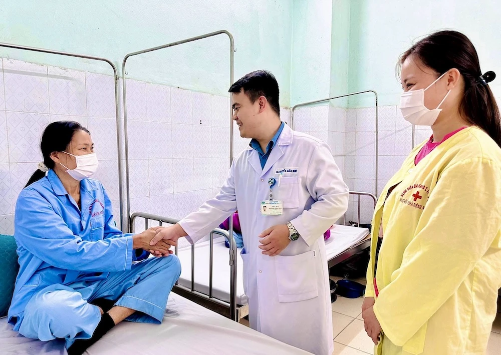 Bệnh nhân được ra viện trong niềm vui của bác sĩ và gia đình.