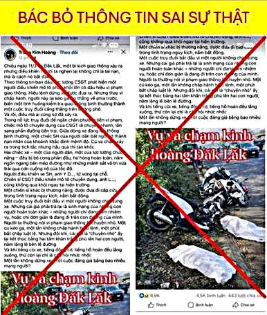 Theo Cục Cảnh sát giao thông, qua kiểm tra, xác minh thông tin từ Công an tỉnh Đắk Lắk, cơ quan chức năng khẳng định không xảy ra vụ tai nạn giao thông như nội dung đang lan truyền trên mạng xã hội. Bài đăng xuất phát từ tài khoản Facebook mang tên Trung Kim Hoàng, đăng tải thông tin chưa được kiểm chứng, có dấu hiệu suy diễn, làm sai lệch bản chất sự việc, ảnh hưởng đến uy tín của lực lượng làm nhiệm vụ.
