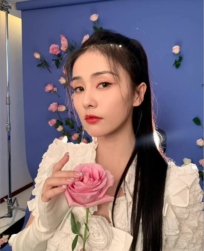 Loạt ảnh trong hậu trường đầy hoa của Bạch Lộc khiến nhiều người hâm mộ thích thú (Ảnh: Weibo nhân vật).