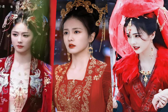 Trong những khung hình mới nhất, Bạch Lộc xuất hiện lộng lẫy với trang phục hỷ phục đỏ rực, thêu đính cầu kỳ đặc trưng của triều đại nhà Đường. Điểm nhấn ấn tượng nhất chính là bộ trang sức đội đầu (phượng quan) tinh xảo với những chuỗi hạt dài che nửa khuôn mặt, tạo nên vẻ đẹp vừa kiều diễm vừa bí ẩn.
