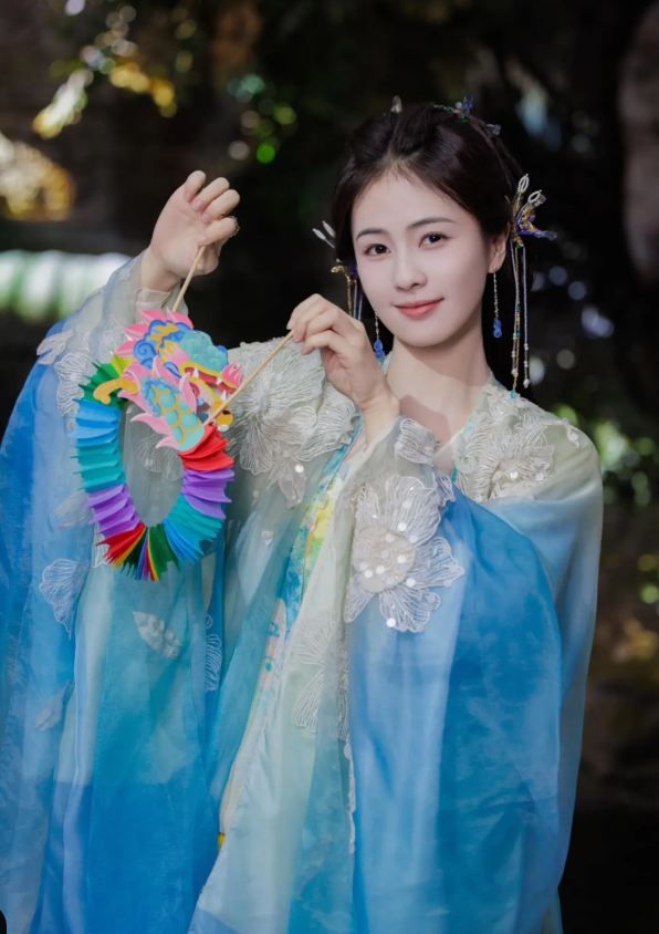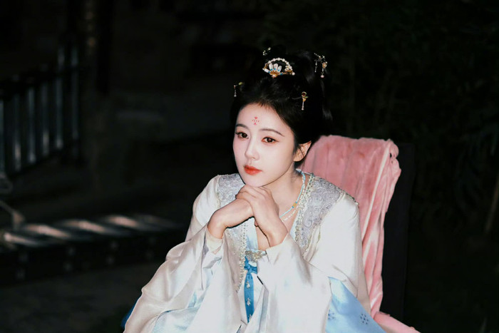 Trong loạt ảnh còn lại, Bạch Lộc lại ghi điểm với phong cách hoàn toàn đối lập. Cô diện bộ cổ phục tông trắng - xanh nhạt, chất liệu mềm rủ, tạo cảm giác nhẹ nhàng và thanh thoát. Phần áo ngoài mỏng, tay rộng, kết hợp váy trong màu xanh dịu mắt, được thêu họa tiết nhỏ tinh tế, mang đậm nét mỹ học cổ trang truyền thống.