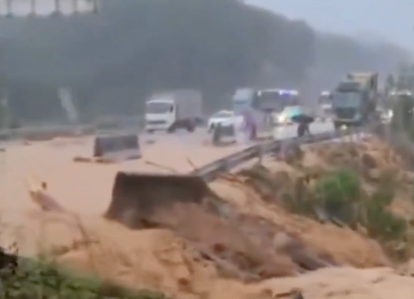 Mưa lũ tràn qua cao tốc cao tốc La Sơn - Túy Loan.