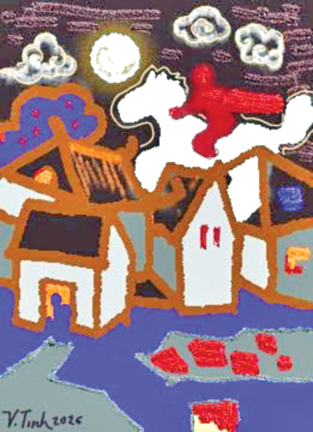 - Hơn cả vị thần chứ, là người cai quản linh hồn cả vùng đất này. Một tướng quân dũng mãnh vô song, diệt cả một đội quân giặc cho dân ta sống đấy. Đêm 30 Tết năm nào mưa thuận gió hòa Ngài sẽ báo trước. Đấy, nằm im, nghe thấy gì không, có thể Ngài đã về đấy. Tôi cố gắng dỏng tai lên, hướng về phía cửa sổ để nghe. Đúng rồi, từ rất xa xôi, có một âm thanh trầm đục rồi cao dần, loang dần ra. Tiếng tù và thì phải. Nghe kỹ, như tiếng gió rít, tiếng mưa xối, tiếng nước chảy rí rách, tiếng chân trẻ con chạy quanh thềm, tiếng cười, tiếng hát… Những âm thanh mơ hồ nhưng hòa quyện, da diết, thúc giục, náo nức khác lạ. Có một hơi ấm rất nhẹ, rất mềm thổi lên má tôi. Tôi mơ mình mặc bộ quần áo lụa đỏ ngồi trên bạch mã trong vòng tay hoàng tử của mình...