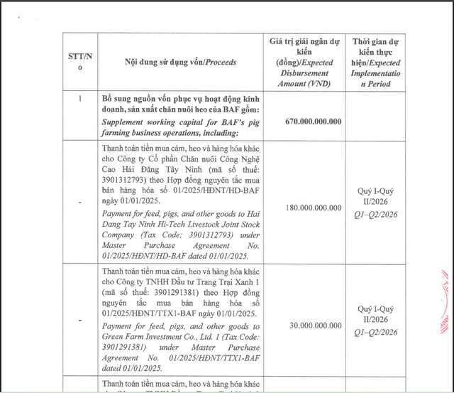 Về mục đích sử dụng vốn, BaF dự kiến phân bổ 670 tỷ đồng đểbổ sung nguồn vốn kinh doanh, đặc biệt là cho hoạt động sản xuất và chăn nuôiheo.